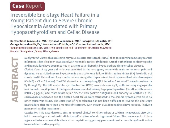 ΟΛΙΚΟ ή ΙΟΝΙΣΜΕΝΟ ΑΣΒΕΣΤΙΟ (ελεύθερο) • Based on 5490 individuals • Use of t. Ca alone would miss 45% of i. Ca based hypercalcemic pas • In verified PHPT, 10% of pas with normal t. Ca had elevated i. Ca Ong GSY, JCEM; 2012