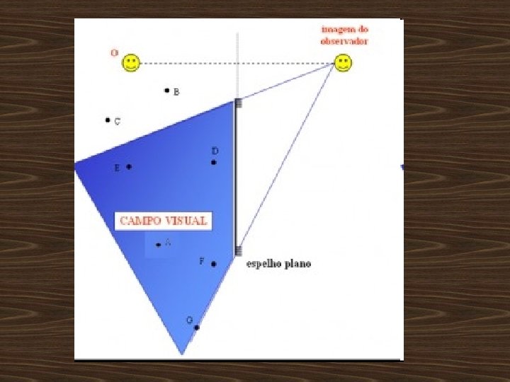 CAMPO VISUAL DE UM ESPELHO PLANO Podemos determinar o campo visual de um espelho plano (a região do espaço que pode ser vista por reflexão) usando um procedimento simples.