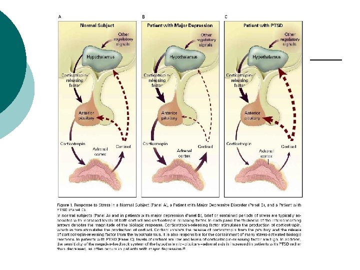 Who gets PTSD and why? ¡ HPA Axis derangement l l Exaggerated cortisol response to stress Exaggerated dexamethasone suppression response High CRH at rest Low cortisol at rest?