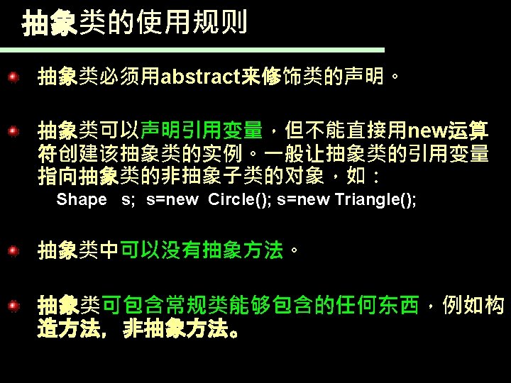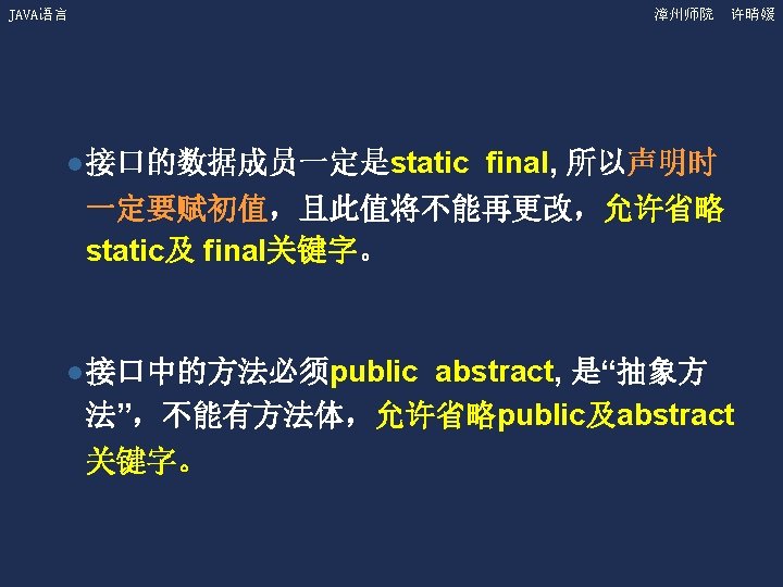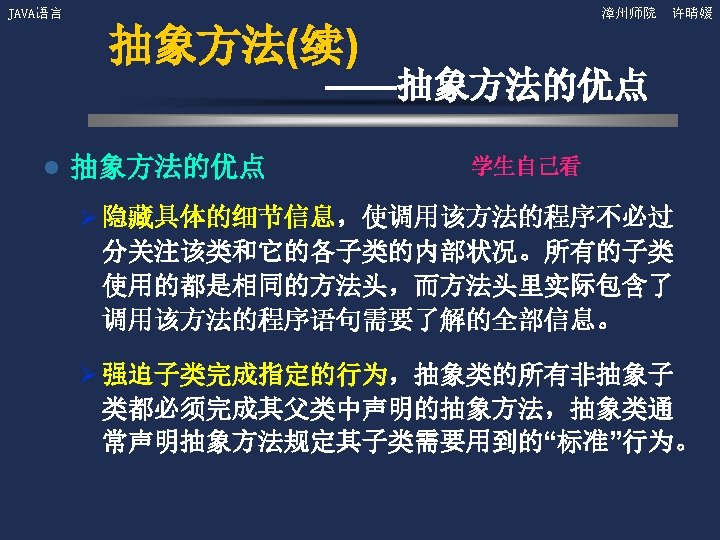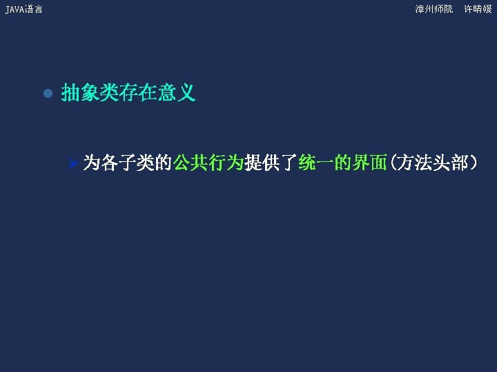 JAVA语言 漳州师院 许晴媛 抽象类和抽象方法例子 Shape s; s=new Circle(); s. get. Area(); s=new Triangle(); s. get. Area();