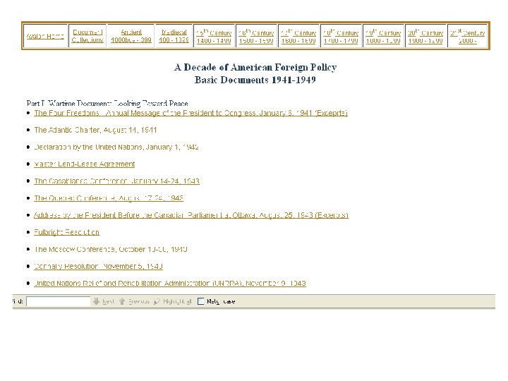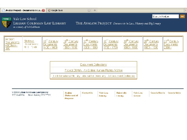 Avalon Project at Yale http: //avalon. law. yale. edu/default. asp "Documents in Law, History & Diplomacy" • digitized • doesn't provide citations • does provide hyperlinks to referenced docs