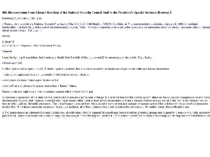 U. S. State Dept. Office of the Historian "Foreign Relations of the United States" database http: //history. state. gov/historicaldocuments • 30+ historians • declassifying documents • compiling documentary history of foreign relations in the U. S. • currently 480+ volumes and growing
