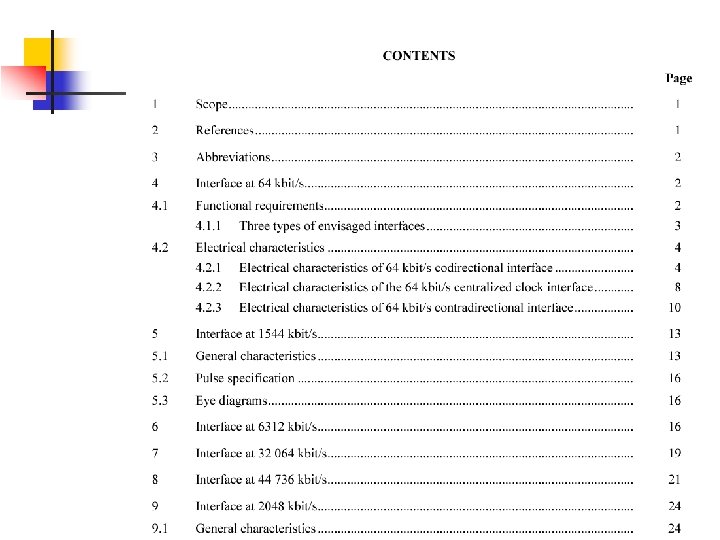 More PSTN standards. . . n n Series O Recommendations - Specifications of measuring equipment Series P Recommendations - Telephone transmission quality, telephone installations, local line networks Series Q Recommendations - Switching and signaling Series V Recommendations - Data communication over the telephone lines