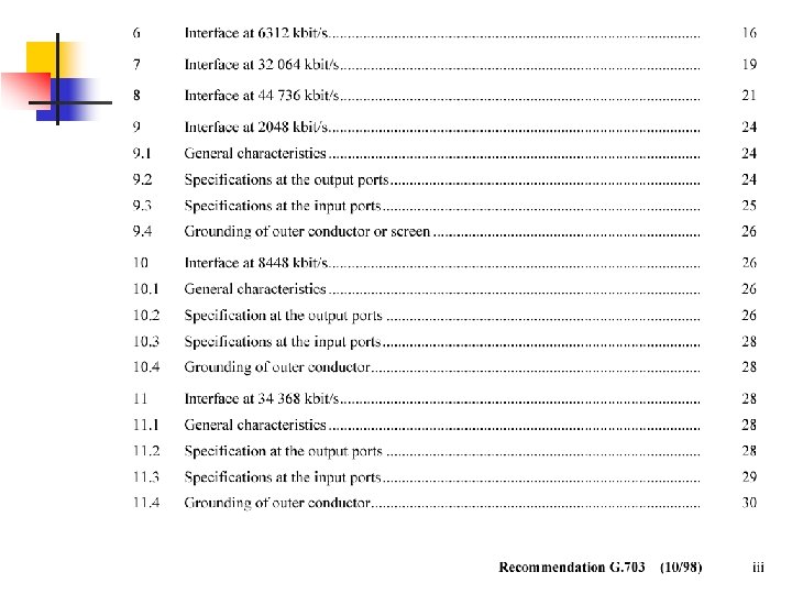 Example: G-recommendations: Transmission systems and media, digital systems and networks