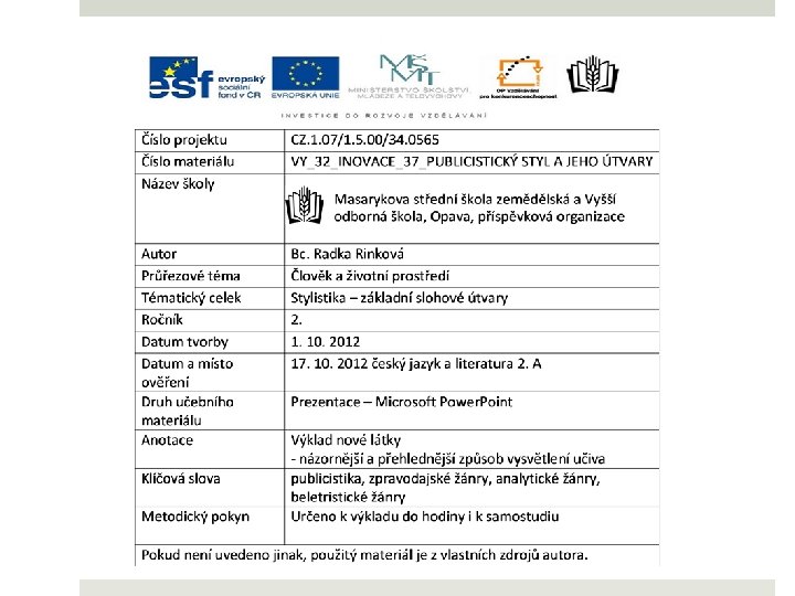PUBLICISTICK STYL a jeho tvary Publicistika se objevuje