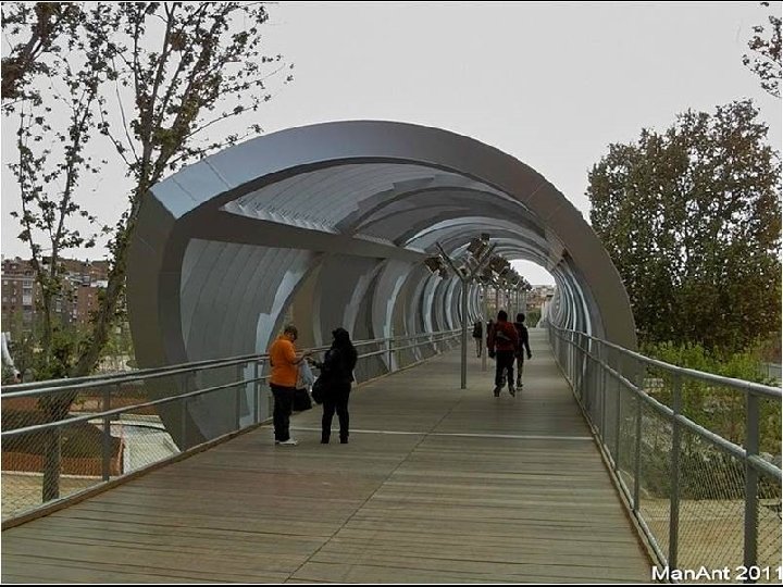 Se trata de una pasarela para uso peatonal y ciclista, que comunica el Paseo de Yeserías con la Avenida del Manzanares, elevándose por encima del Parque de Arganzuela y del cauce del propio río.