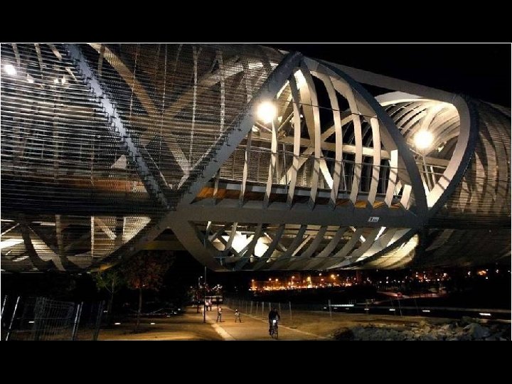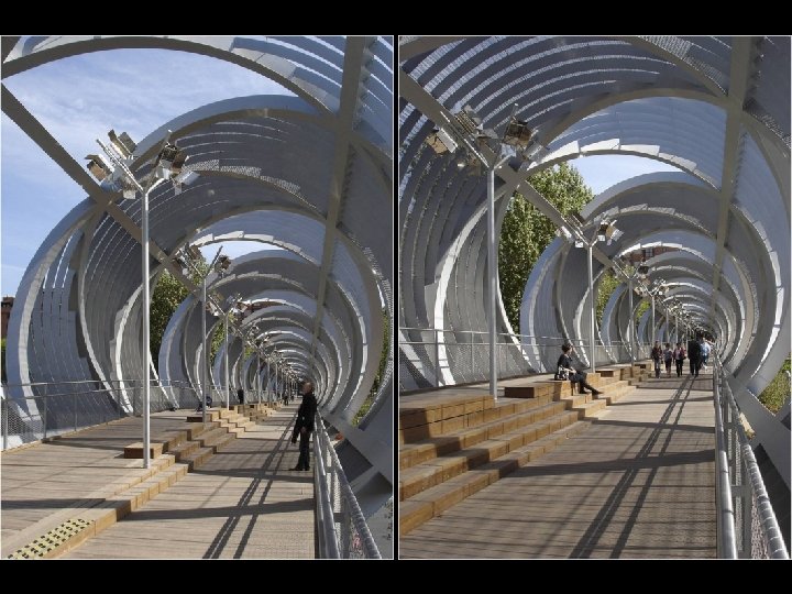 Se encuentran cubiertas con una malla metálica de color plateado, que recorre toda la estructura, entrelazándose con ella. Según Perrault, esta banda tiene como misión crear sombra durante el día y convertirse en un objeto luminiscente por la noche, como si fuera una enorme linterna.