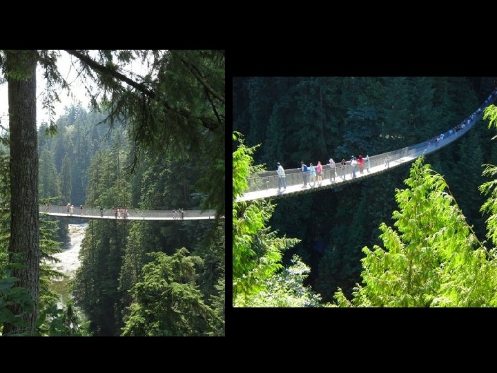 Capilano Suspension Bridge (Canadá). Originalmente construido en 1889, este puente colgante de tablones de cedro es muy estrecho e inestable. Eso sí, las vistas son impresionantes: la plataforma recorre un río en mitad de un bosque cerca de Vancouver. Si no eres miedica, espera hasta la próxima primavera: los visitantes podrán acceder al puente a través de una serie de pasarelas suspendidas que se unirán a un precipicio. Está a 70 metros de altura.