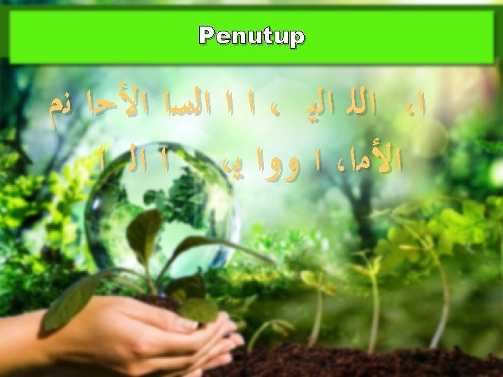 Pujian kepada Allah S. W. T. ﺍﻟﻣ ﻟﻠ ﺍﻱ ﻯ ﺍﻟﺍ ﻱ ﺍﻷﺭ ﻋ ﺻﺍﺍ Segala puji bagi Allah, Yang Melarang perbuatan kerosakan di bumi sesudah Dia menyediakan segala yang membawa kebaikan padanya
