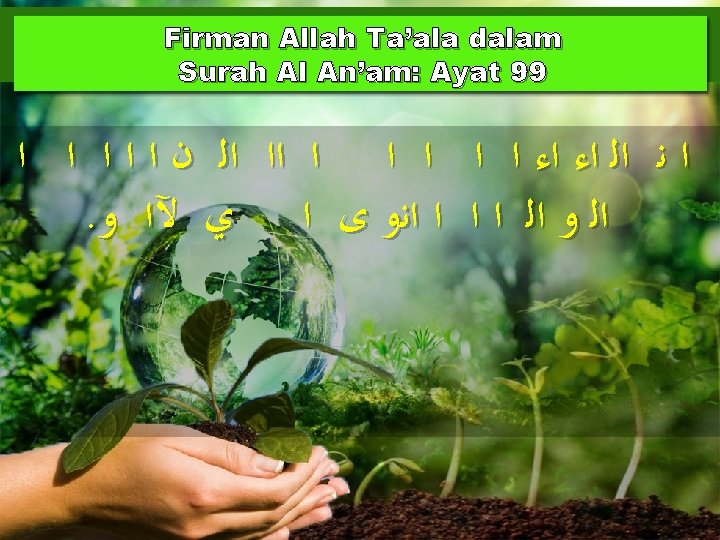 Manusia diamanahkan untuk mengimarahkan alam Firman Allah Ta’ala dalam Surah At-Tin: Ayat 4 . ﺍ ﺍﻧﺍ ﻱ ﻳ “Sesungguhnya kami telah jadikan manusia dengan sebaik-baik kejadian”.