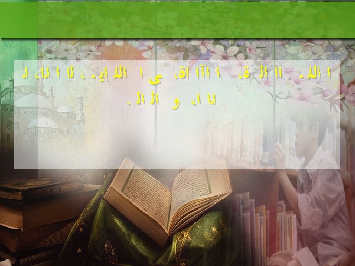 Selawat Ke Atas Nabi Muhammad S. A. W ﻟ ﺍﻯ ﺍ ﻯآ Ya Allah, cucurilah rahmat dan sejahtera ke atas junjungan kami Nabi Muhammad S. A. W dan keluarganya serta para sahabatnya.