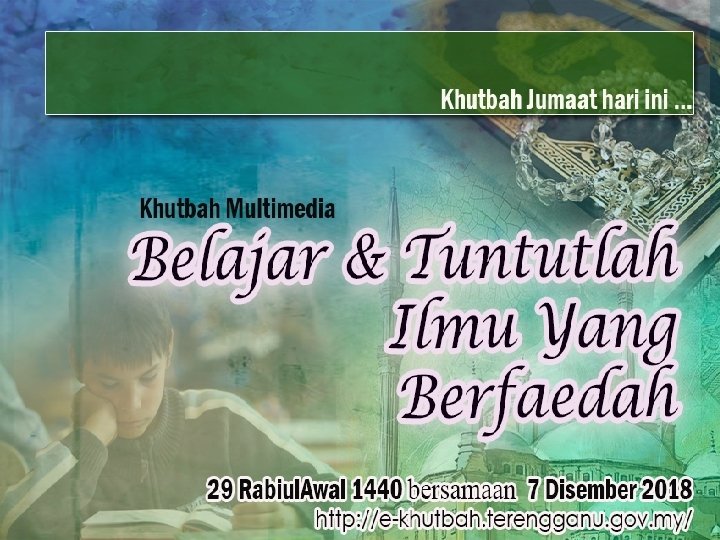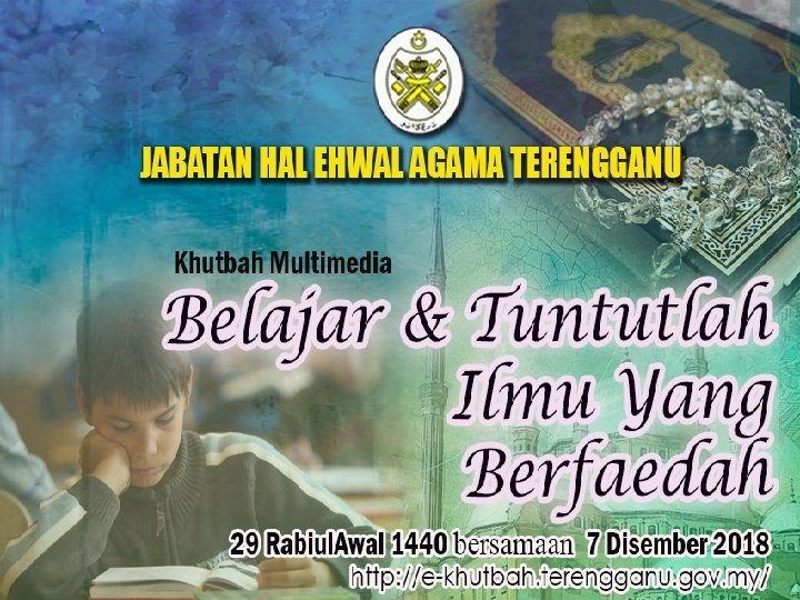 INTISARI KHUTBAH JUMAAT PADA 07/12/2018 TAJUK: BELAJAR DAN TUNTUTLAH ILMU BERMANFAAT 1. AYAT QURAN PERTAMA DITURUNKAN IALAH ( ﺍﻗﺮﺃ BACALAH DENGAN NAMA TUHANMU YANG MAHA TERMULIA) IAITU PERINTAH SUPAYA DICARI ILMU SAMAADA MELALUI PEMBACAAN, PEMERHATIAN ATAU PENYELIDIKAN. 2. ILMU HASIL DARIPADA PEMBACAAN (TERUTAMA DARIPADA AL QURAN) DAN PENYELIDIKAN AMAT LUAS. TETAPI YANG MENJADI KEPERLUAN UTAMA IALAH ILMU YANG MEMBERI MANFAAT DUNIA DAN AKHIRAT. ILMU YANG PALING TINGGI TUNTUTAN IALAH ILMU YANG MENINGKATKAN MAKRIFAT KEPADA ALLAH DAN KEAGUNGAN NYA 3. ILMU FARDHU AIN IALAH ILMU YANG BERKAITAN DENGAN KEWAJIPAN MUKALLAF SAMAADA MENGENAI ALLAH ATAU MANUSIA. ILMU FARDHU KIFAYAH IALAH ILMU YANG MENJADI KEPERLUAN MASYARAKAT DAN BAGI TUJUAN MEMBINA KEKUATAN DAN KEPAKARAN UMMAH. 4. MEMPELAJARI DAN MENUNTUT ILMU TIDAK MENGENAL BATAS SEMPADAN ATAU WAKTU. DALAM ISLAM BELAJAR DAN MENUNTUT ILMU YANG BERFAEDAH ADALAH KEMESTIAN DAN SEPANJANG HAYAT.