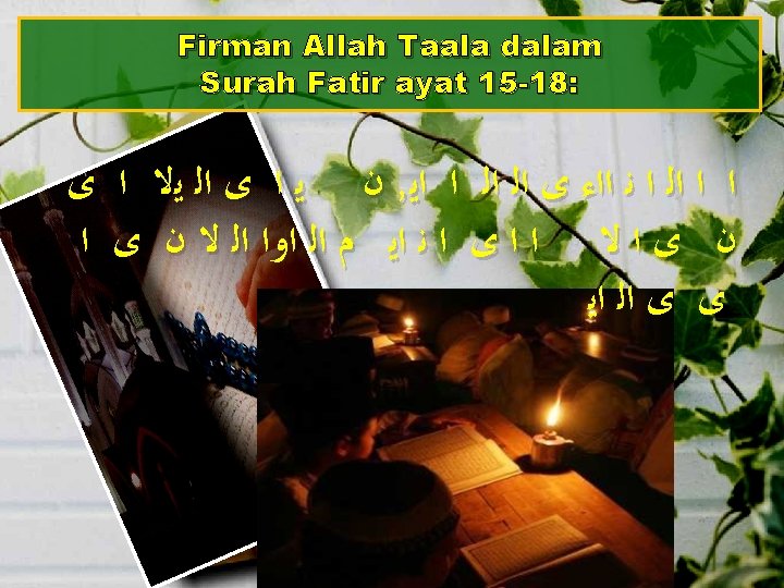 Firman Allah Taala dalam Surah Al Hijr ayat 99: ﺍ ﻯ ﺍﻳ “Dan sembahlah Tuhanmu, sehingga datang kepadamu perkara yang tetap dan yakin”