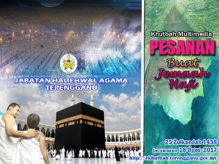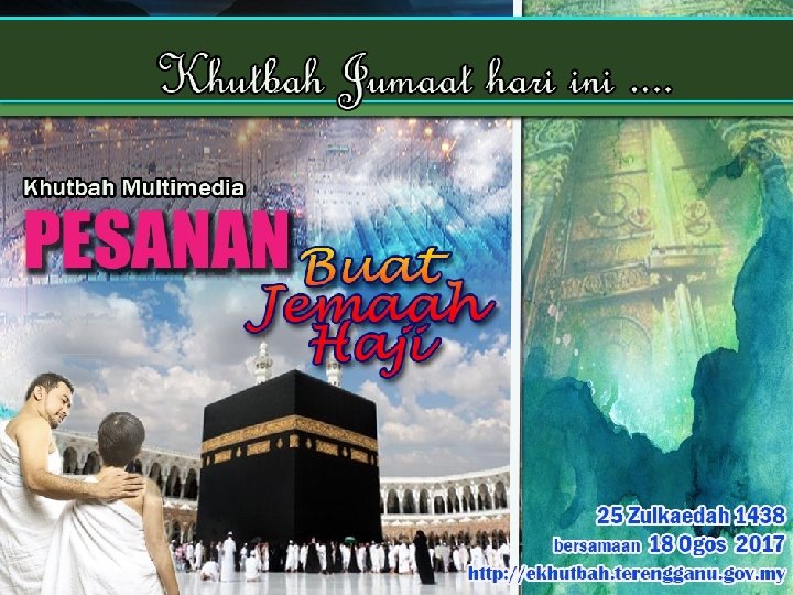 INTISARI KHUTBAH JUMAAT PADA 18/08/2017 TAJUK: “PESANAN BUAT JEMAAH HAJI” 1. HAJI ADALAH IBADAT TERTUA YANG DISYARIATKAN BERTUJUAN MENDEKATKAN DIRI KEPADA ALLAH, MENDAMBAKAN KEDAMAIAN DAN KETENANGAN JIWA SERTA KEAMPUNAN ALLAH. 2. HAJI YANG DITUNAIKAN DENGAN PENUH IKHLAS DAN BERSIH DARI KEMUNGKARAN, ADALAH PROSES PENGHAPUSAN DOSA, MENGHASILKAN HAJI MABRUR YANG BALASANNYA ADALAH SYURGA. 3. PARA JAMAAH PERLU FOKUS KEPADA MATLAMAT HAJI DENGAN MEMANTAPKAN ILMU DAN AZAM MEREBUT PELUANG BERIBADAT SELAIN MEMPASTIKAN KESEMPURNAAN RUKUN, WAJIB, SUNAT DAN ADAB-ADABNYA. 4. PASTIKAN JUGA BERAZAM UNTUK MENGAMBIL IBROH DARIPADA ﻣﺸﺎﻋﺮ ﺍﻟﺤﺞ DAN MEMANTAPKAN MENTAL DAN FIZIKAL DI SAMPING TIDAK DILENGAHKAN OLEH URUSAN REMEH SEPERTI ‘SHOPPING’, ‘BERWHATSAPP’ DAN BERSUAFOTO.