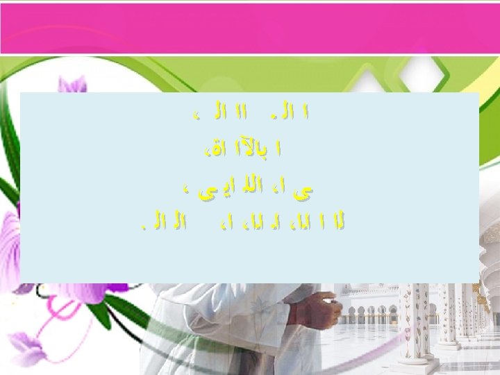 Syahadah ، ﻥ ﻵ ﺇ ﻻ ﺍﻟﻠ ﻻ . ﺍ ﺍ Aku naik saksi bahawasanya tiada Tuhan selain Allah dan ke. Esaan. Nya tiada sekutu bagi. Nya, dan aku naik saksi bahawa penghulu kami nabi Nabi Muhammad S. A. W adalah hamba. Nya dan rasul. Nya.