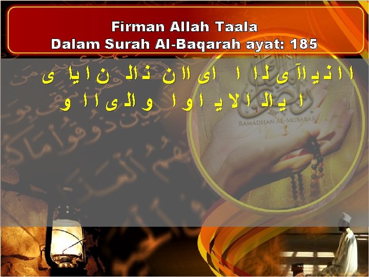 sambungan…. …Allah menghendaki kemudahan bagimu, dan tidak menghendaki kesukaran bagimu. Dan supaya kamu cukupkan bilangan puasa (sebulan Ramadhan), dan supaya kamu membesarkan Allah kerana mendapat petunjuk. Nya, dan supaya kamu bersyukur”.