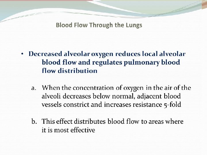 ![Blood flow �Effect of alveolar [O 2]: when [O 2] decreases below 70% of Blood flow �Effect of alveolar [O 2]: when [O 2] decreases below 70% of](https://slidetodoc.com/presentation_image_h2/beeca8b5d5c4df5f10adc8e4d214a868/image-8.jpg)