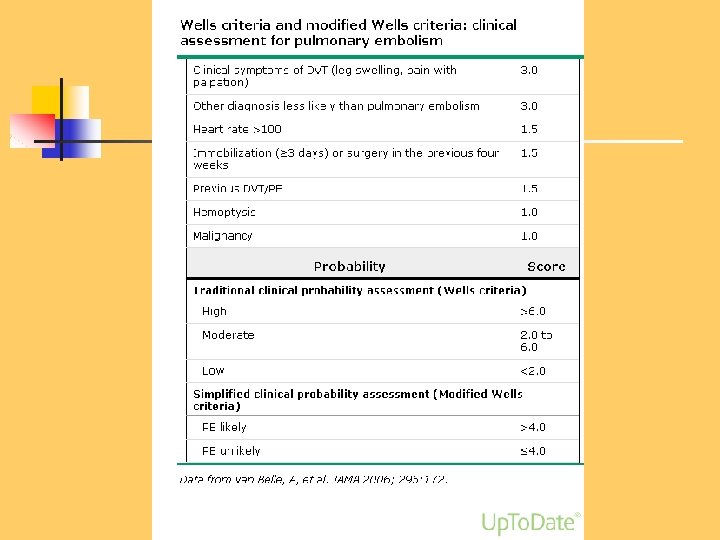 n n n Unexplained acute dyspnea Tachypnea Substernal chest discomfort Pleuretic chest pain Hemopthysis n Cyanosis Shock / sencope n Asymptomatic n Physical findings: (nonspecific) n 97%