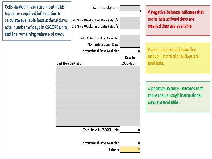 Non-Instructional Days • First Day of School • Assessment Days – TPRI/Tejas Lee – Pre-Assessments/Post -Assessments – CSCOPE/Common Assessments – Nine Week Testing – Benchmark Testing – TAKS/EOC • Early Release Days • Picture Day • Teacher’s PD/Personal/Sick Days • Health Screening • Inclement Weather • Extracurricular Events