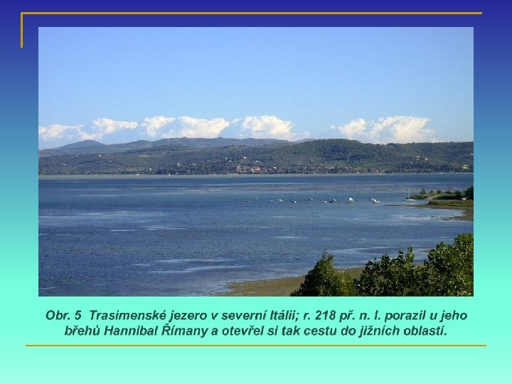 Druhá punská válka • Kartáginci obsadili jižní Hispánii (Pyrenejský poloostrov, osada Nové Kartágo) • útok na Itálii ze severu, přes Alpy • velitelem Hannibal • porazil Římany v bitvě u Trasimenského jezera a v bitvě u Kann • obléhal Řím video 2. video 3.