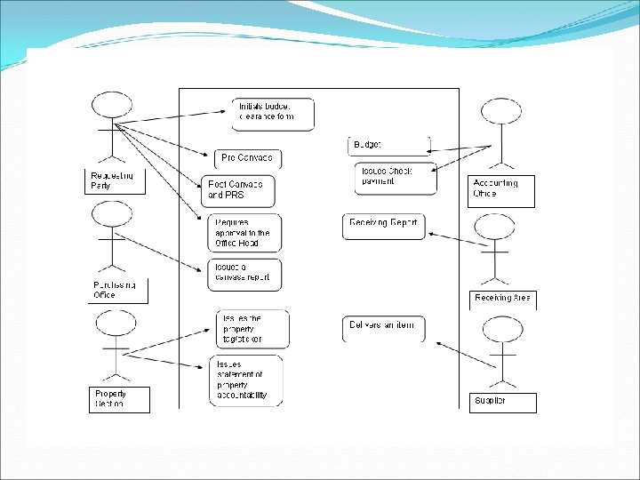 Benefits � They control the number of request from the party � Secures Material requisition Form as proof of request and Payment requisition Slip for payment for their purchases that made � Secure purchased items to the warehouse for inventory and issuance of property tags/stickers before it was distributed to the party � They enter through the canvass report to have an option if the party will purchase an item or not.