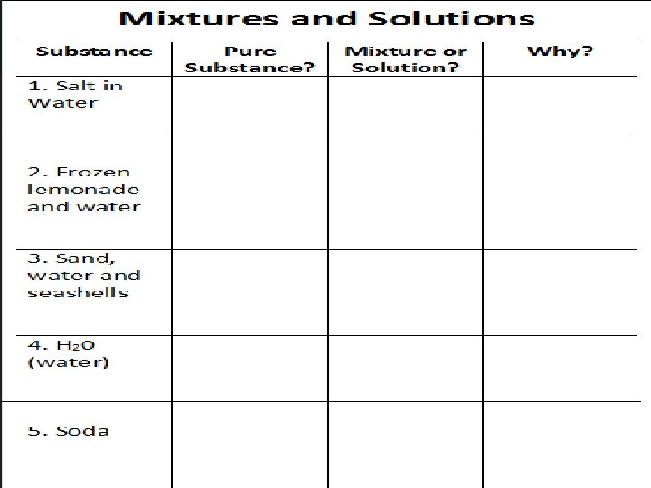 Pure Substances, Mixtures, Solutions Power. Point for week of 9/25/15