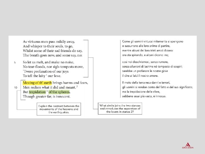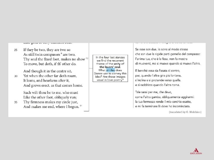 Songs and Sonnets (1633) • It is a collection of love elegies and love songs. • Donne’s love is physical as well as spiritual. • The poem reflects a passionately tender attitude to love and women. • He believes that the union of the souls is stronger than that of the bodies → lovers are compared to the connected legs of a compass. John Donne