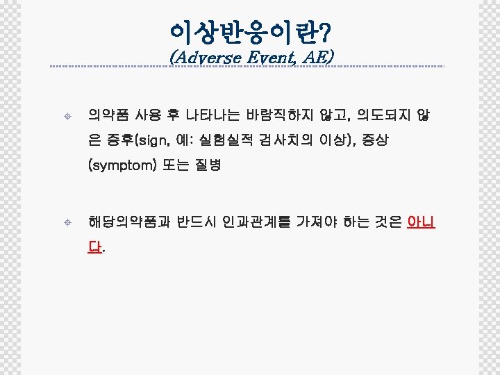 The ways of encouraging safety reporting ± Investigator education ® Understand how to monitoring and reporting ® Know what AEs to expect ± Subject education ® Ask investigator’s advice on everything ® Use of patient diary