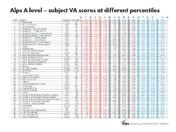 S� etting targets by subject MEGs as a starting point • • • 22 You need to set your subject specific target to ensure you are being aspirational In biology, subject targets may be in line with the Alps MEG, whereas in media studies may have subject targets that are one above the Alps MEG. Finally, you should clearly take other factors into account, i. e. if a student has a particular flair in your subject At A Level Biology Mathematics At BTEC 2010 Ext Dip Art & Design 2010 Ext Dip Performing Arts English Literature 2010 Ext Dip Business Religious Studies 2010 Dip Health & Social Care Media Studies