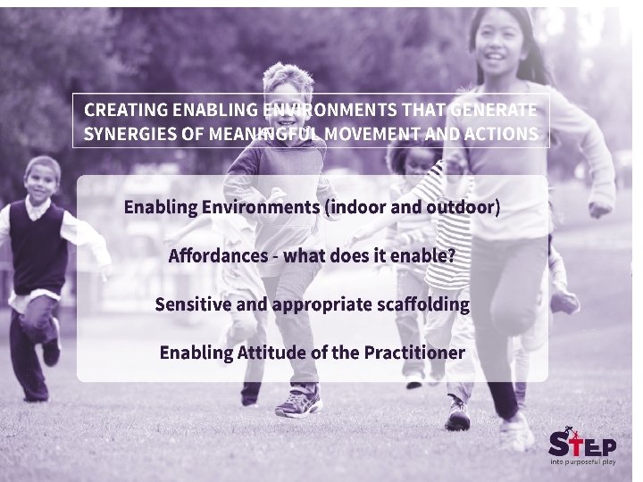 Finally We believe that there is a need to go beyond the narrow focus of Physical Development and provide a more comprehensive vision of what can be achieved. First of all, we need to recognise the importance of movement itself that enables optimal development and facilitates vitality and dynamism and energises living: children need to move much more frequently and more energetically.