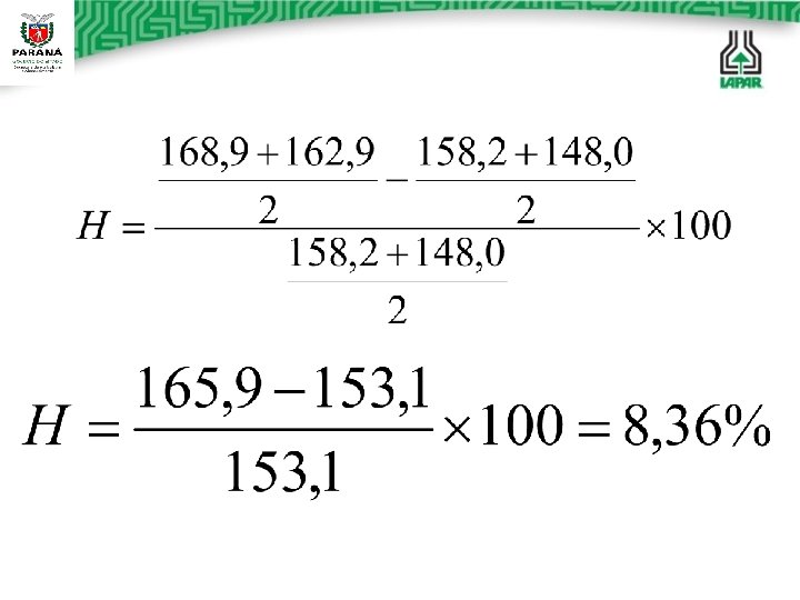 HETEROSE H = Heterose (%) MM = Média dos F 1 recíprocos MP = Médias das raças paternas