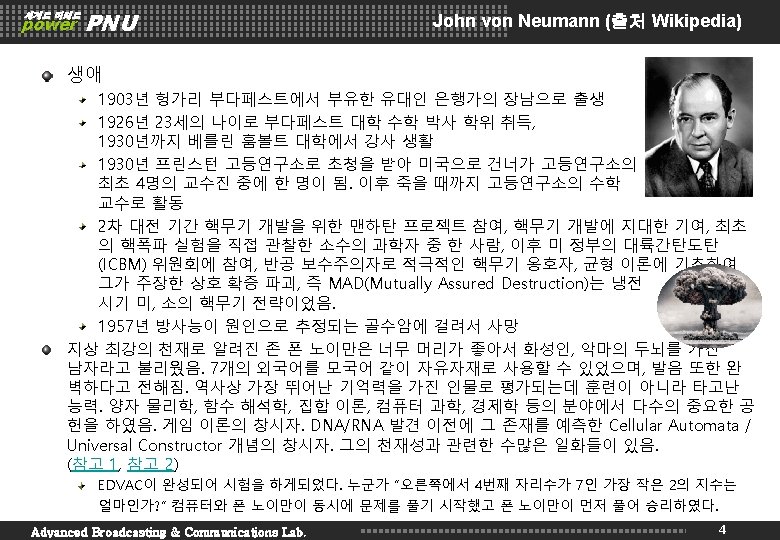 4 power PNU 2 세계로 미래로 Advanced Broadcasting & Communications Lab. Von Neumann Model 2