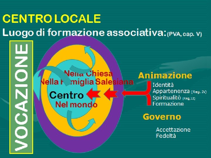 Il Centro locale q Unità di base operativa q Nucleo e fondamento q Cellula vitale per raggiungere obiettivi q Da esso dipende la vitalità nella sussidiarietà dell’ASSCC q. Gli altri organismi a livello superiore (provinciale, mondiale) sono al suo servizio, ne rispettano l’autonomia e ne favoriscono la comunione ecclesiale