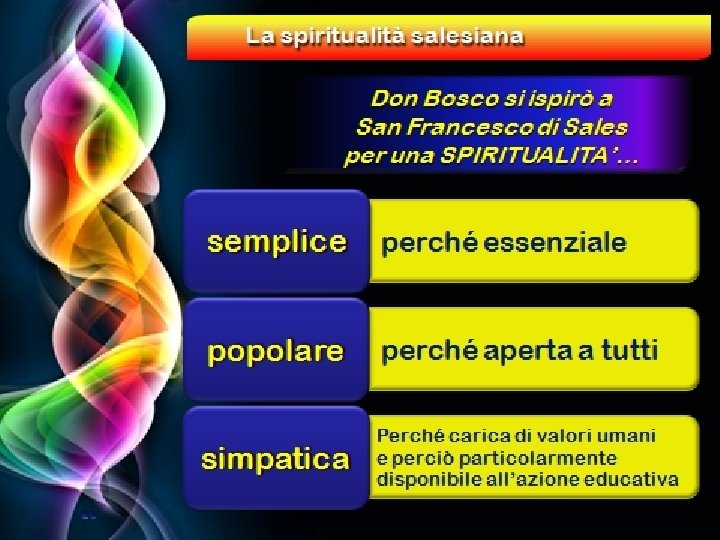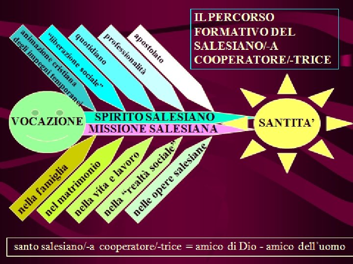 Dono di Dio e scelta personale che vanno sempre insieme E’ necessario • Esserne coscienti • Scoprire veramente che è un cammino di santità • Conoscerlo sempre di più • Viverlo come una via che conduce all’amore § Facendone un modo di essere e di vivere insieme agli altri Questa è la risposta cosciente e libera a Don Bosco