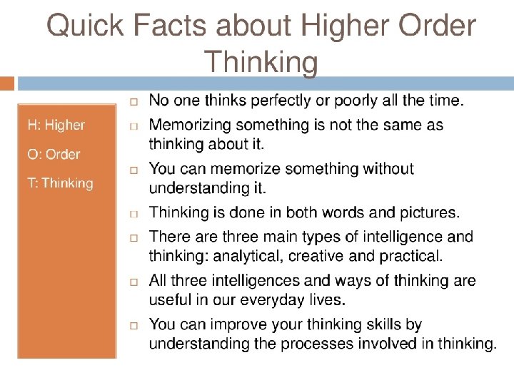 Creating Evaluating Can you recall the formula for …? Can you select …? Can you identify the main parts of …? Analysing Applying Understanding I can remember facts about the information What were the main …? Remembering