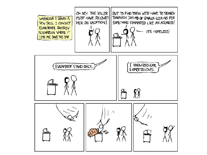 “Some people, when confronted with a problem, think ‘I know, I'll use regular expressions. ’ Now they have two problems. ” -- Jamie Zawinski http: //www. jwz. org/