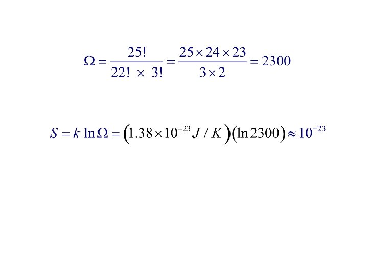7. Twenty-five identical molecules are in a box. Microstates are designated by identifying the molecules in the left and right halves of the box. 10– 23 J / K. The Boltzmann constant is 1. 38 The entropy associated with the configuration for which 22 molecules are in the left half and 3 molecules are in the right half is on the order of: 1. 10– 23 J/K 2. 10– 20 J/K 3. 103 J/K 4. 1022 J/K 5. 10– 10 J/K