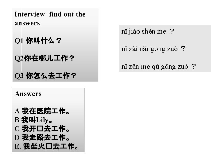 姓名 Xing ming 家庭地址 Jia ting di zhi 作地址 怎么去 作 Gong zuo di Zen me qu zhi gong zuo Other info 其他信息 Qi ta xin xi