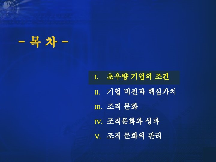 IBM n Vision § Global Innovation Leader n Mission Statement § At IBM, we strive to lead in the creation, development and manufacture of the industry's most advanced information technologies, including computer systems, software, networking systems, storage devices and microelectronics. § We translate these advanced technologies into value for our customers through our professional solutions and services businesses worldwide. n Core Values § IBMers determined that our actions will be driven by these values: - Dedication to every client's success - Innovation that matters, for our company and for the world - Trust and personal responsibility in all relationships 카이스트 테크노경영대학원 7
