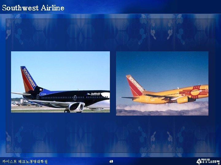 정합성을 통한 경쟁우위: Southwest Airlines’ Activity System No meals Limited Passenger service No baggage transfers No Connections With other airlines No Seat assignments Frequent Reliable departures High compensation of employees Flexible Union contracts 카이스트 테크노경영대학원 15 -minute gate turnarounds Lean, highly Productive Ground and Gate crews High level Of employees Stock ownership Limited use Of travel agents Automatic Ticketing machines High Aircraft utilization 57 Standardized Fleet of 737 aircraft Very low Ticket prices Short-haul, Point-to-point Routes between Midsize cities and secondary airports “southwest The low-fare airlines