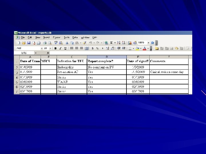 CME Documentation of echocardiographyrelated continuing education for all medical and technical personnel must be maintained Keep in central location; update annually Materials – CD, journal, Internet, videotape materials – Departmental, local, regional and national conferences and courses
