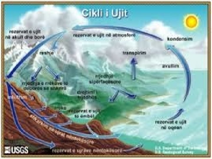 Avullimi • Avullimi i ujit paraqet gjendjen agregate të lëngtë ose të ngurtë në gjendje të gaztë, respektivisht në gjendje të avullit. • Uji kryesisht avullohet prej sipërfaqes oqeanike, të cilat mbulojnë më së dy të tretat e sipërfaqes tokësore. Burimet tjera të avullit të ujit janë: lumenjtë, liqenet, toka e lagësht.