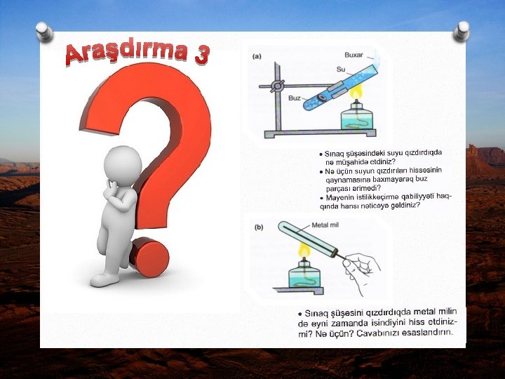 Tədqiqat sualı. . • Müxtəlif maddələrin istilikkeçirməsi hansı şəkildə gedir ?