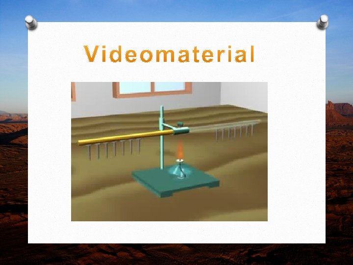 Resurslar Elektron dərslik Ehtiyat vasitələr Test tapşırıqları Iş vərəqləri Dərslik ştativ Mis və dəmir çubuqlar, Nazik metal mil, qayka Spirt lampası Plastilin, buz parçası, su, tıxac Mismarlar, sınaq şüşəsi