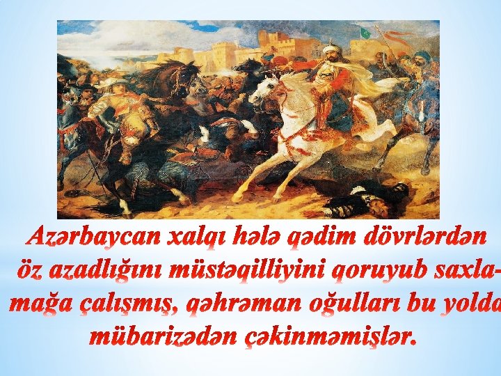 Babəkin əsrlər öncə dediyi bu sözlərdə necə də böyük həqiqət var. Azadlıq xalq , millət, bir dövlət üçün hər şeydən üstündür. Bəs azadlığı necə əldə edirlər? Tarixən vətənimizin azadlığı necə qorunub saxlanılıb? Hansı dahi şəxsiyyətlər vətənimizin , dövlətimizin azadlığı uğrunda mübarizə aparıblar ? Bütün bu suallara cavab tapmaq üçün xalqımızın şərəfli tarixinə bir nəzər salaq.