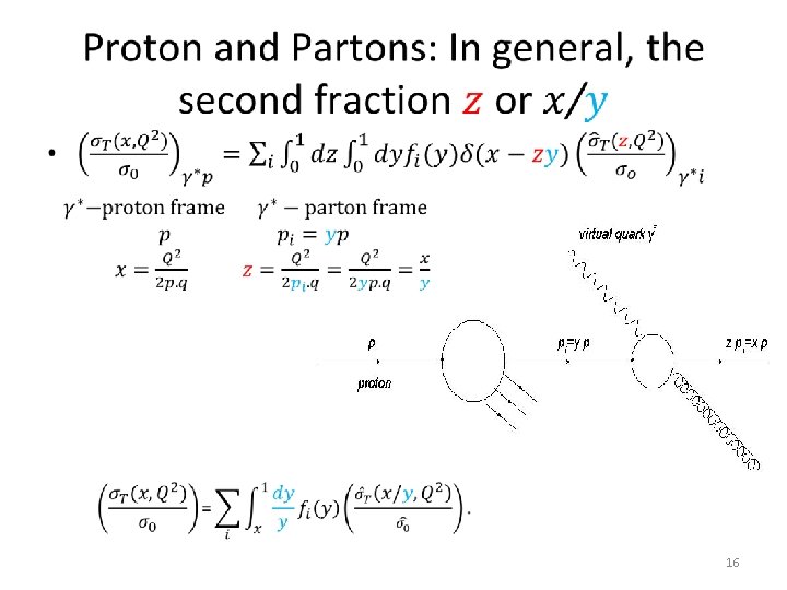 Bjorken Scaling (a Parton model, QED result) is verified but only approximately; further improvement by QCD • Changing to “Compton Scattering” 15