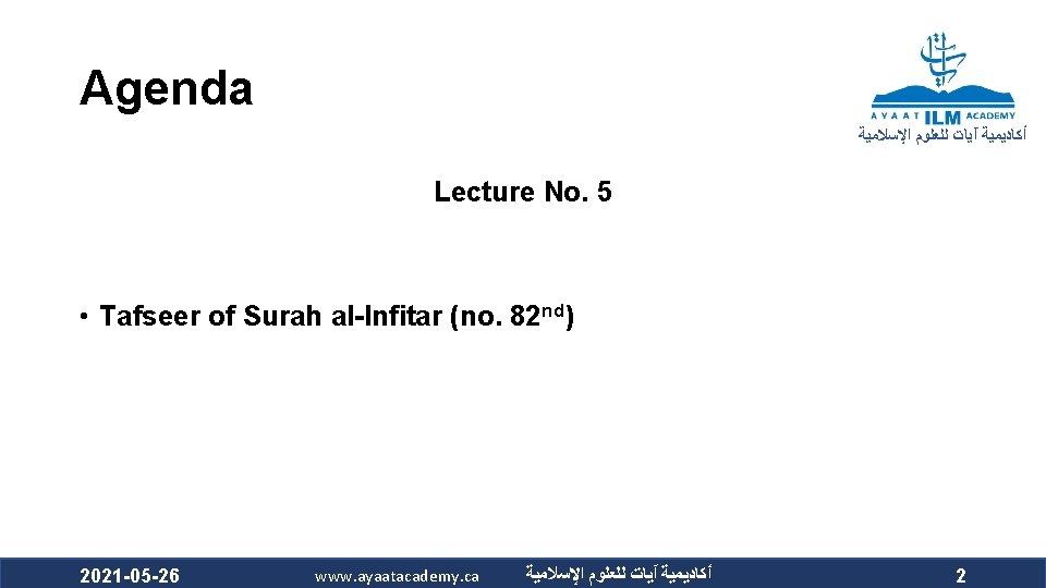 ﺃﻜﺎﺩﻳﻤﻴﺔ آﻴﺎﺕ ﻟﻠﻌﻠﻮﻡ ﺍﻹﺳﻼﻣﻴﺔ QRN 111 – Tafsir Curriculum – Lecture No. 5 TAFSEER Imam Adnan Balihodzic First Semester 1442 H/2020 2021 -05 -26 www. ayaatacademy. ca ﺃﻜﺎﺩﻳﻤﻴﺔ آﻴﺎﺕ ﻟﻠﻌﻠﻮﻡ ﺍﻹﺳﻼﻣﻴﺔ 1