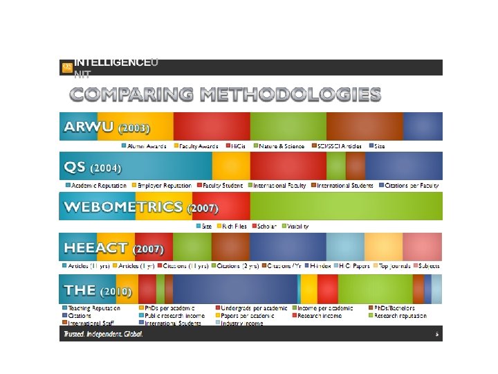 Strategies offered by QS • QS star rating : 30, 000 UDS (3 years): - overall university figure - performed upon request - Rating is not dependent on the performance of other institutions - Rating include core competency(50%), additional competency(25%) and specialist competency(25%) • Benchmarking (with 4 -6 institutions): 65, 000 USD