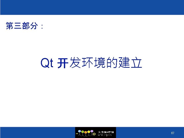 建立Qt/Embedded开发环境(二) ³ 解压缩并设置环境变量 ² 安装tmake cd ~/pxa 270 Qt tar –xzf tmake-1. 13. tar. gz export TMAKEDIR=$PWD/tmake-1. 13 ² 安装Qt 2. 3. 2 cd ~/pxa 270 Qt tar –xzf qt-x 11 -2. 3. 2. tar. gz export QT 2 DIR=$PWD/qt-2. 3. 2 ² 安装Qt/E 2. 3. 10 cd ~/pxa 270 Qt tar –xzf qt-embedded-2. 3. 10 -free. tar. gz export QTEDIR=$PWD/qt-2. 3. 10 69