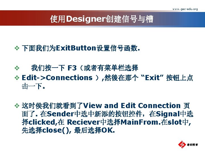 www. gec-edu. org Signal和Slot的连接方式(一)
